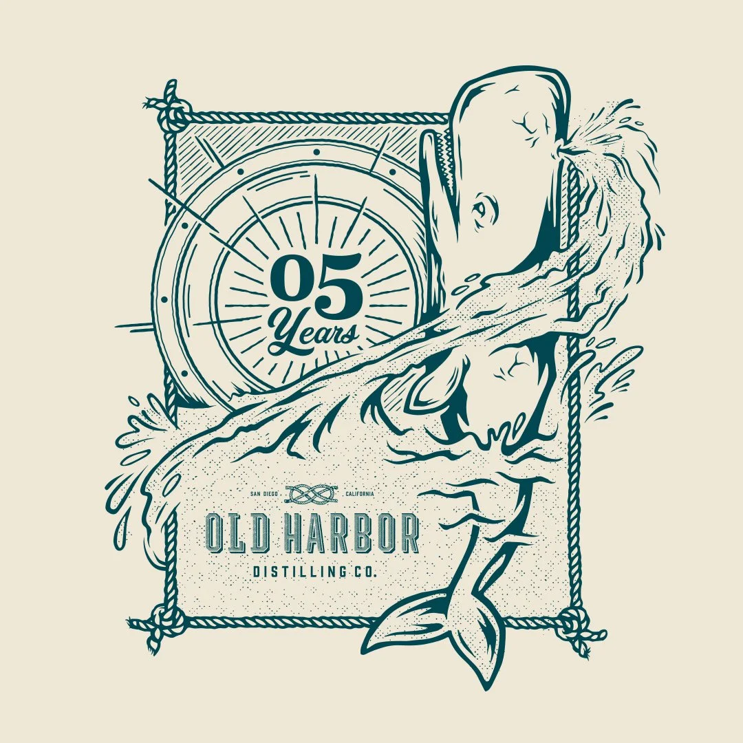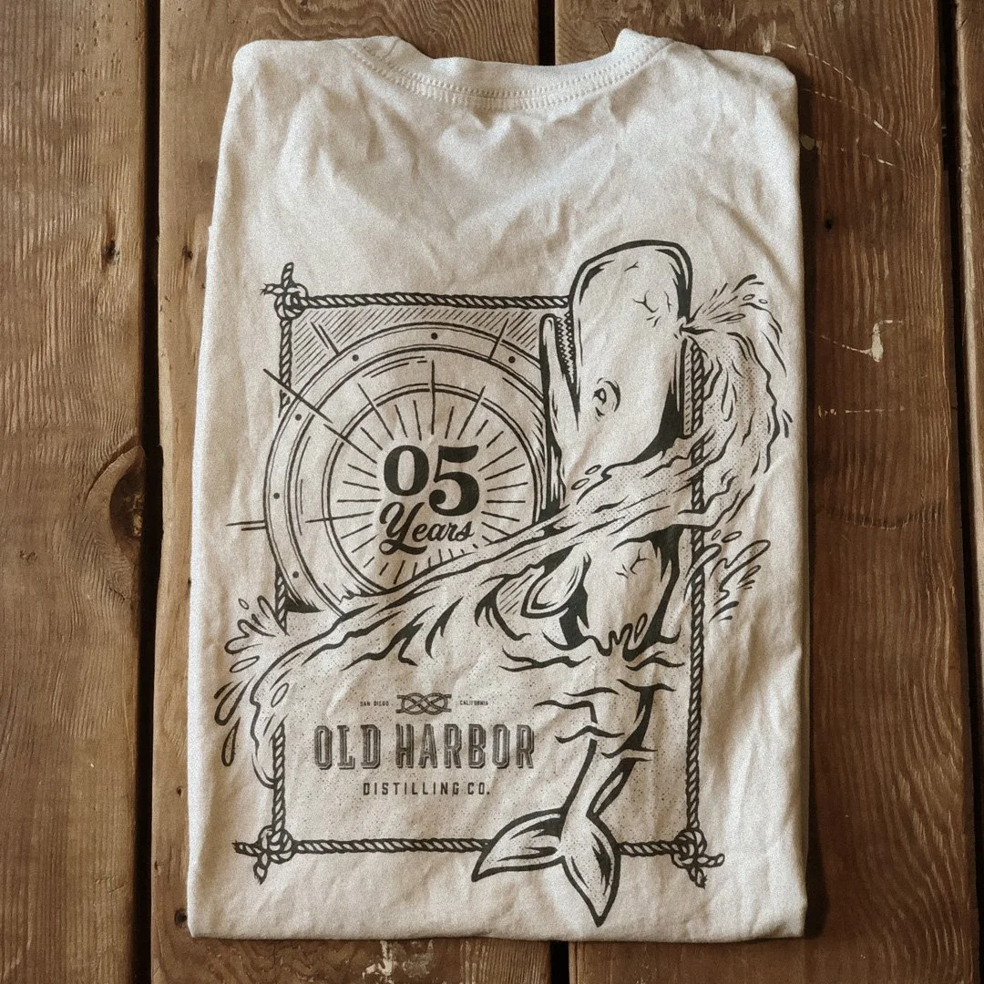 Tee Design I did in collaboration with Caava Design for the 5th anniversary of Old Harbor Distilling Company.